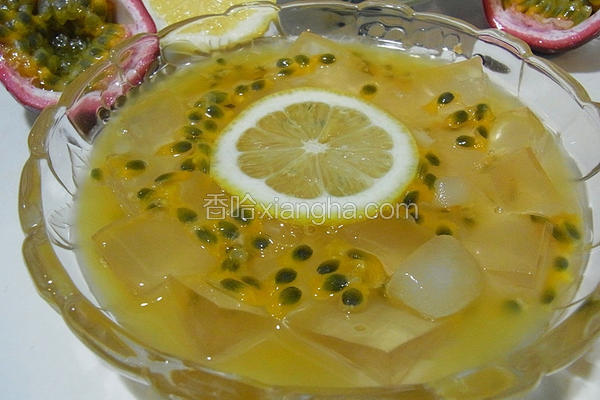 4.将爱玉切块,倒入柠檬汁和蜂蜜水调味