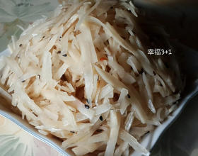 ※去皮可用:铁刷、刀背方式、铝箔纸捏成球形来除去牛蒡外皮。※煮牛蒡的水别丢,可直接饮用(牛蒡茶)。※尽量切细一点口感较好。※牛蒡在冷却时,接触空气氧化会稍微变黑,再泡白醋就能白回来。(自己成品也有稍微变黑,但不影响口感)