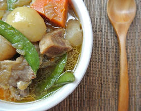 - 3. 转为大火锅内的时候大滚放入红萝卜盖上锅盖闷煮(中小火)20分钟->放入魔芋(中小火)15分钟->马铃薯(中小火)30分钟->甜豆3分钟就可以起锅了