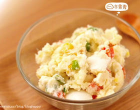 蔬菜类煮熟后放凉,挤进沙拉与薯泥中作搅拌。