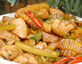 不停的翻炒至锅里水份干透,大肠略微出油。