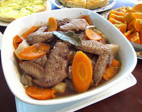 1、2、喜欢吃肉质软的人,可以将炖好的公鸡肉放一晚,隔天在煮滚享用,肉质会变得较软,红酒味也较浓厚。3、不喜欢红萝卜味的人,可将红萝卜切成约 0.5 公分的斜片。4、吃不完的可以放另一锅子冷却后冰起来,要吃之前在用电锅加热即可。5、有些人也会加入烟燻猪胸三层肉,煮之前切 3 公分条状,放入另一炒锅用奶油炒香、冷冻小洋葱炒香,一起加入炖煮,应该也十分美味 ,喜欢也可自由搭配。