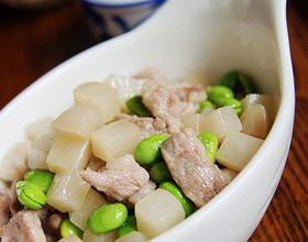毛豆炒肉丁咸菜的做法