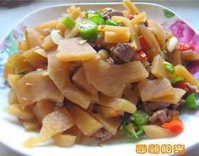 加入柚子皮同炒,加适量水稍焖一会调入盐和味精即可
