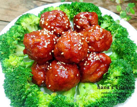 将调味料拌匀放入锅中加热后,再将鸡肉丸倒进去拌匀到汤汁差不多快收干即可盛盘