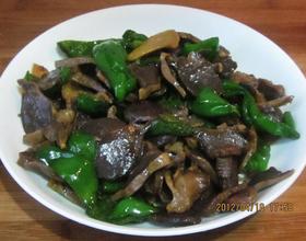 倒入青椒加少许盐翻炒片刻后加入少许清水。