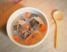 将柿饼以米字切成丁状 ,红萝卜去皮切丁 ,老姜三片 ,香菜三株不切 ,放入与鸡肉一起 ,倒入约1000ml水 ,撒入小匙盐巴 。外锅加如150ml水(约一杯水) ,炖煮约15分钟即可完成 。