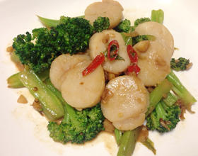 绿花椰菜切小朵;辣椒、蒜头切末;、葱切小段。