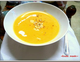 *也可因各人喜好添加配料,例如蘑菇、玉米、火腿......,可以先将它们炒熟再加入高汤与南瓜煳,其他步骤都依样。*若是不想吃到洋葱的口感可先将洋葱炒至软烂(褐色)(降比较香),在与蒸好南瓜一起打匀,再下去煮就可了!!*打好南瓜泥有很多妙用,可以与牛奶与糖结合成南瓜牛奶;而剩下的南瓜浓汤还可以收干一点,做成南瓜意大利面喔!!