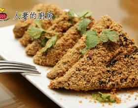 酱→香菜→花生粉(按压)的顺序来沾,就是好吃的猪血糕了!