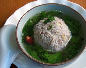 - 5. 蒸好的狮子头出锅前放入少许的青菜叶碎,即可装碗上桌享用了。有香菜最好是香菜末,我今天忘记买了,之后用青菜碎代替了。