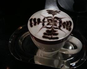 加入杯中,同时可以练习拉花,最后挤上巧克力酱,雕花装饰