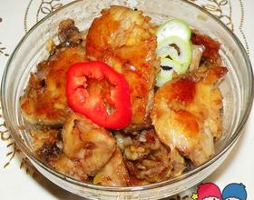 大葱末、姜末、酱油、蚝油、白糖、醋、淀粉调成汁,马友鱼吸干水份。<我这个是腌制过的>