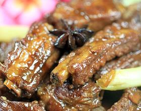 待排骨软烂后,大火收浓汁液,就可以上盘了。