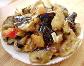 - 8. 翻炒均匀,倒入炸好的茄子块。