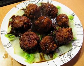 - 24. 锅中剩余酱汁淋在狮子头上即可。