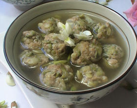 - 11. 将汤锅置于旺火上,倒入清水烧开,改用小火,用手把肉馅捏成丸状