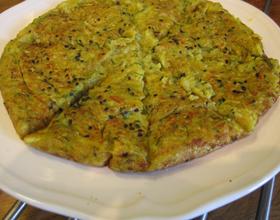 此饼不用加入一滴水,完全用西葫芦本身的水分和蛋液把面粉调成饼糊,最大保留了食材的原味和营养,非常健康的早餐。