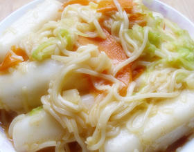 炒锅里加适量的水煮沸,倒入卷心菜丝