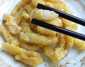 1、猪膘肉处理干净,不要有筋膜。2、炸制注意火候,不要太轻也不要火太大。3、挂糖稀后趁热将肉条分离,不要拔丝效果。4、热食好味道,晾凉也别有风味。70后的你们一定还记得它!