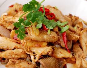 母鸡肉最好不要炖的太烂,这样炒过嚼起来才有味道。