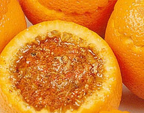 1.用小刀垂直将中间的橙瓤挖出,这时注意小刀不要用力过猛,防止把橙弄破。2.猪肥膘肉氽熟,一可去表面污物,二可使肉中油脂溢出一部分,食时不至过腻。“蟹酿橙”一菜,橙用黄熟大者,截顶剜去穰,留少液以蟹膏肉实其肉,仍以蒂枝顶覆之,入小瓶用酒醋水蒸熟,用醋盐佐食,香而鲜。使人有新酒菊花香橙蛇蟹之兴。此菜立意新巧,今存原意,用料较原作稍改。