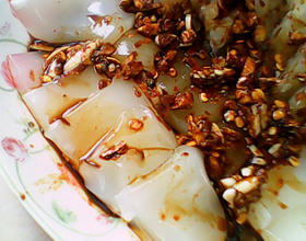 将酸辣酱汁淋在猪皮冻上,一道美味的酸辣猪皮冻就做好啦!