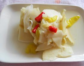 春笋晾凉后加入葱姜蒜、大料、花椒、小辣椒丁