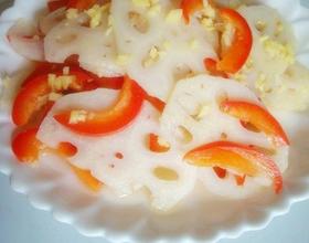 藕片中放入白醋、白糖、香油、鸡精、姜末、盐拌匀。