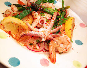 1.不吃辣椒的可以不加辣椒,也可用辣椒圈替换辣椒粉。2.香草可以选用香菜和薄荷更地道。3.蔬菜和海鲜汆烫时间不宜过长,水中要加盐,也可以加一些油,烫了之后马上入凉水,凉了就捞起滤干水分。才能保持口感和色泽。