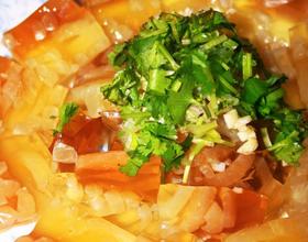 要想把猪皮冻做的既透明又精到,那就要在处理猪皮上多下功夫,清理干净,还有就是再煮猪皮的时候记住一定要煮到水的感觉焦筹状,这样的猪皮及口感好有透明,吃起来很精到,很好吃,希望大家会喜欢