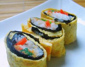 用刀蘸水把寿司切成薄片,码入盘中即可。