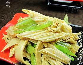 锅中水烧开加少许盐放入芹菜焯烫过凉备用。