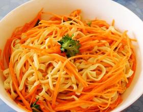 盛入碗中马上胡萝卜丝和香菜。