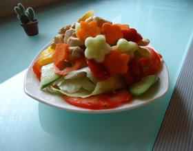 紅蘿蔔煮熟切成自己喜愛的形狀.彩椒小黃瓜洗淨切好