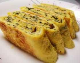 鸡蛋打入碗中,搅散。海苔剪成碎末。将海苔末倒入蛋液中,加少许糖和盐,搅拌均匀。