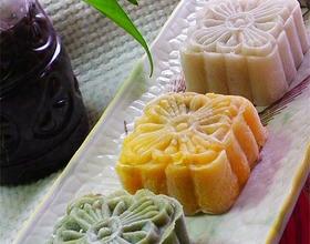 - 8. 分别混入果珍,绿茶粉、可可粉和匀,做成四种颜色的粉团,将粉团分成8份,豆沙也分8份。
