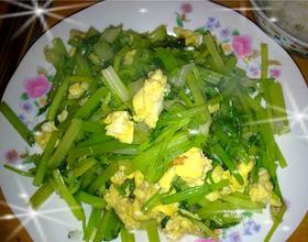 芹菜炒得差不多的时候加入鸡蛋后加入盐味精出锅。