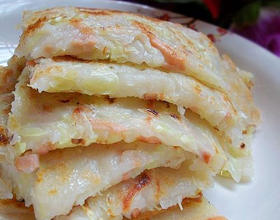 把包菜丝和热狗肠丝加入糊糊,加盐搅匀。