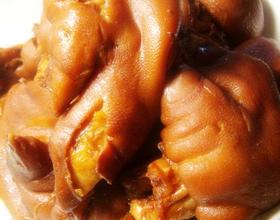 另取一锅放入足量的水,依次放入猪蹄、葱、姜。