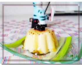 - 9. 取两粒蓝莓果摆在布丁上做装饰。