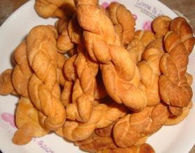麻花已经变色,一定要小火炸,这样里面才能炸透