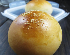 - 8. 发酵好的面团表面刷蛋液,撒上芝麻,我撒的是杏仁粉。烤箱180度预热10分钟。
