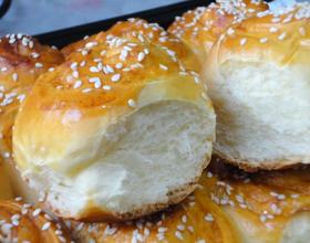 - 14. 把面包胚均匀的码放到烤盘中,表面盖上湿润的纱布,进行二次发酵(烤箱发酵档30分钟)