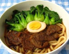 - 8. 再将乌冬面放入锅中;将它们打散,烧煮一下;入少量的盐和胡椒等调料;煮好后装入碗中,将刚才烫好的牛肉,鸡蛋和白菜放在上面。