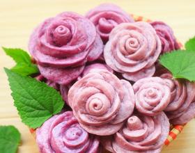 - 25. 凉水入锅,大火烧开水后,转小火,蒸20分钟,关火,焖3分钟后开盖取出!一篮浪漫的紫玫瑰就在你的手中盛开了!