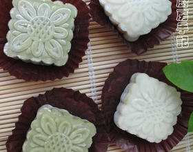 - 15. 把和好抹茶粉的冰皮分成四份,每份40克;原色冰皮也按40克一个分成四份备用;
