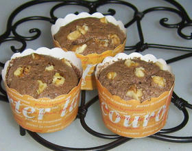 把面糊装入纸模内约2/3满,面上撒上核桃仁。