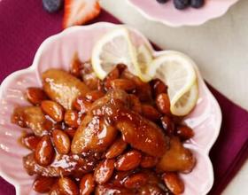 - 12. 杏仁表面均匀裹上酱汁后,即可关火装盘。