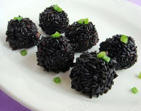 右手拿着在紫米里打个滚,粘上紫米粒。